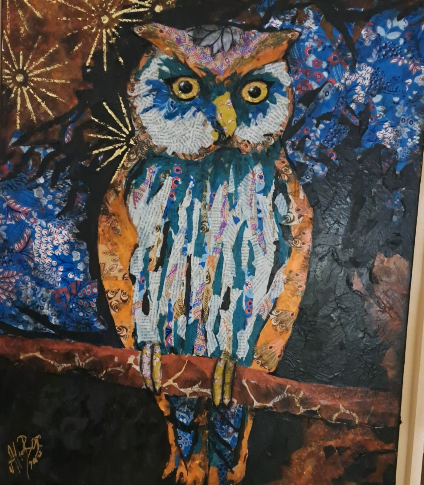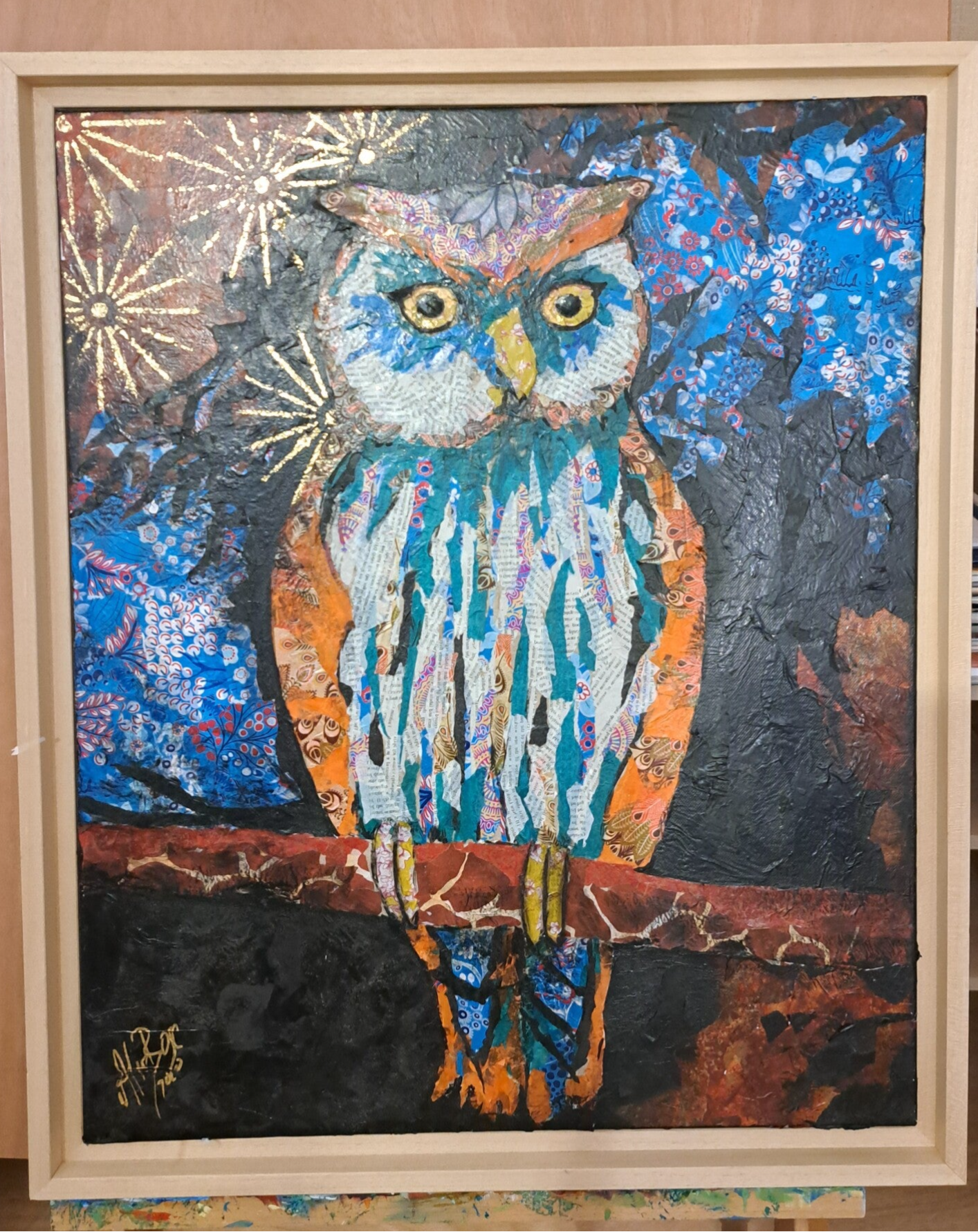 Toile 50x60 cm technique papiers collés encadrement bois naturel