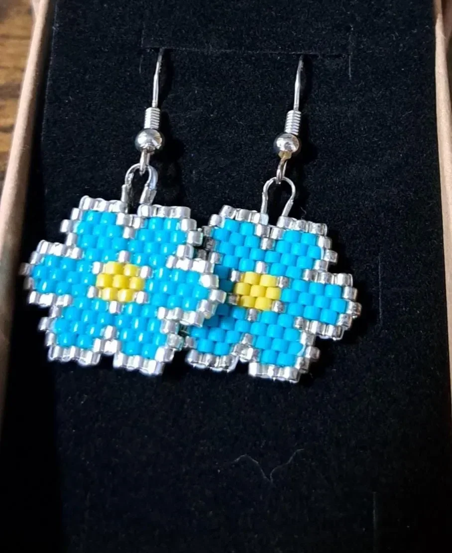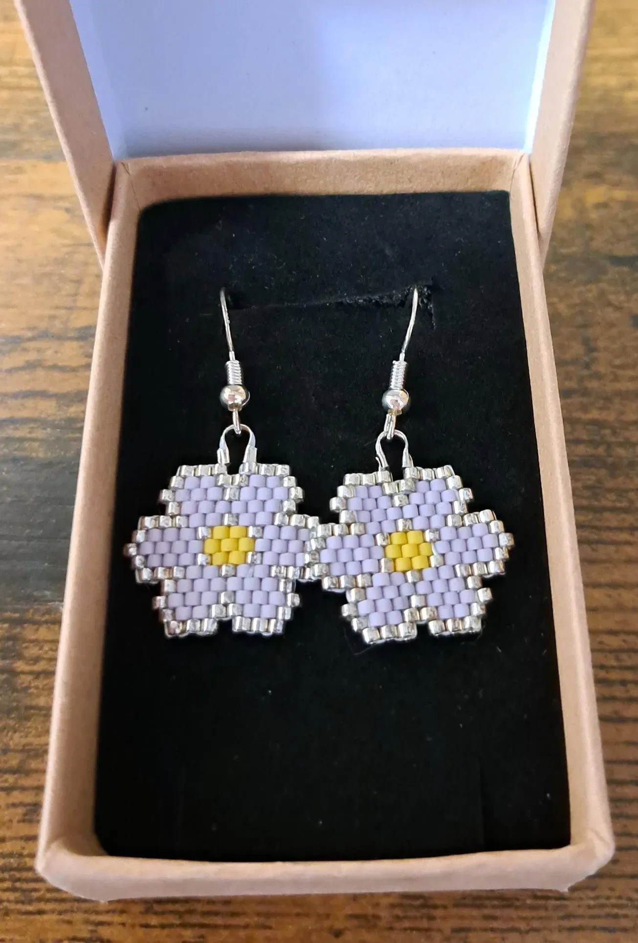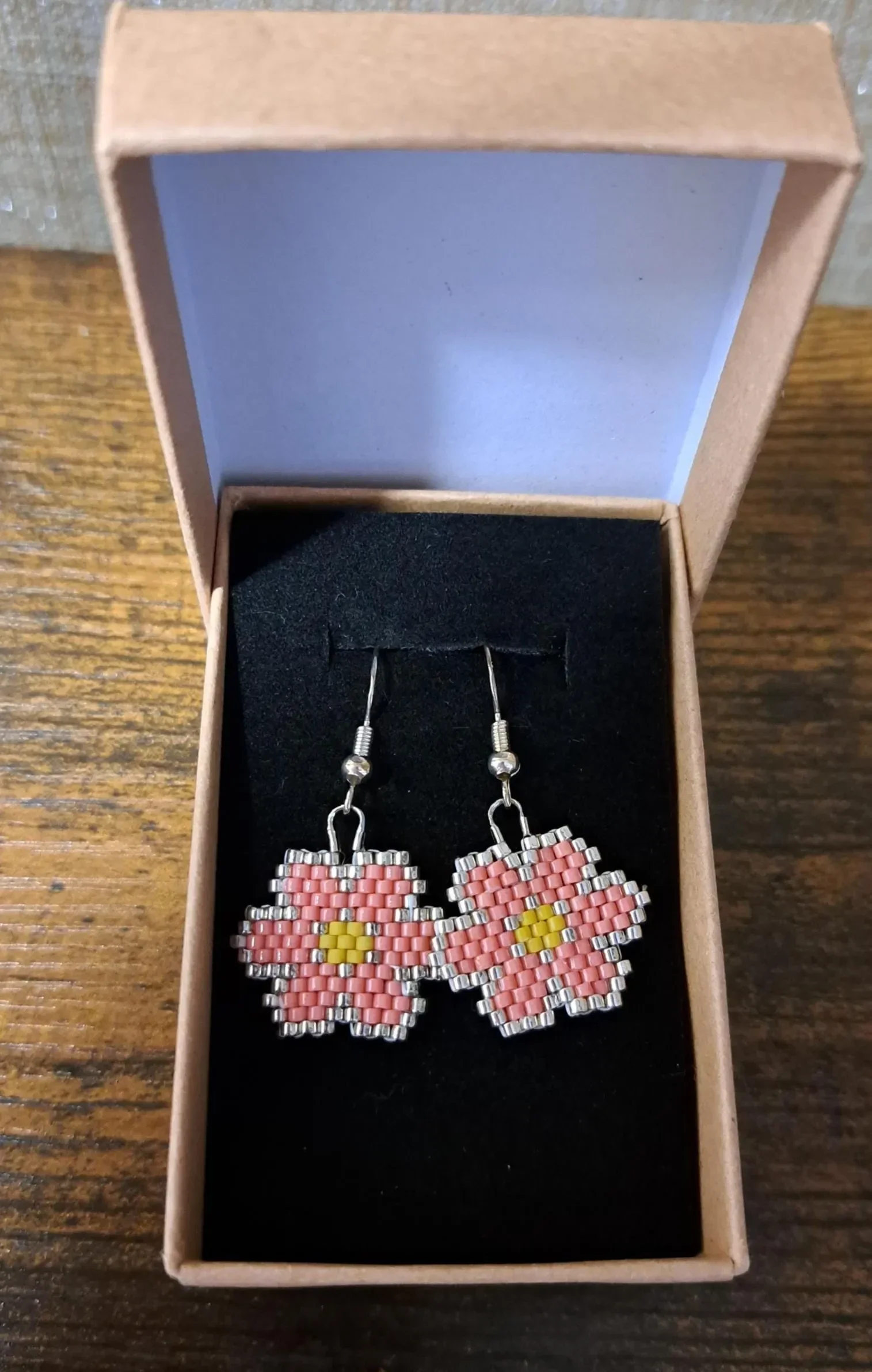 Boucles d'oreilles en perles miyukis en forme fleurs blanches ou roses, vertes, bleus, crochets en argents 925, inoxydables. modele unique
