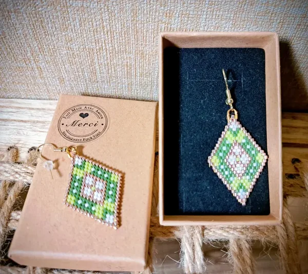Boucles d'oreilles en perles miyukis, crochets en argents 925 dorées, tons verts