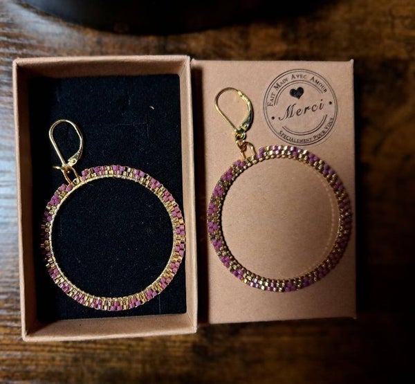 boucles d'oreilles dormeuses argents 925 dorés , tressages perles miyukis , tons pastels . fait main, bonne qualité, modèle unique, diamètre 4 cm